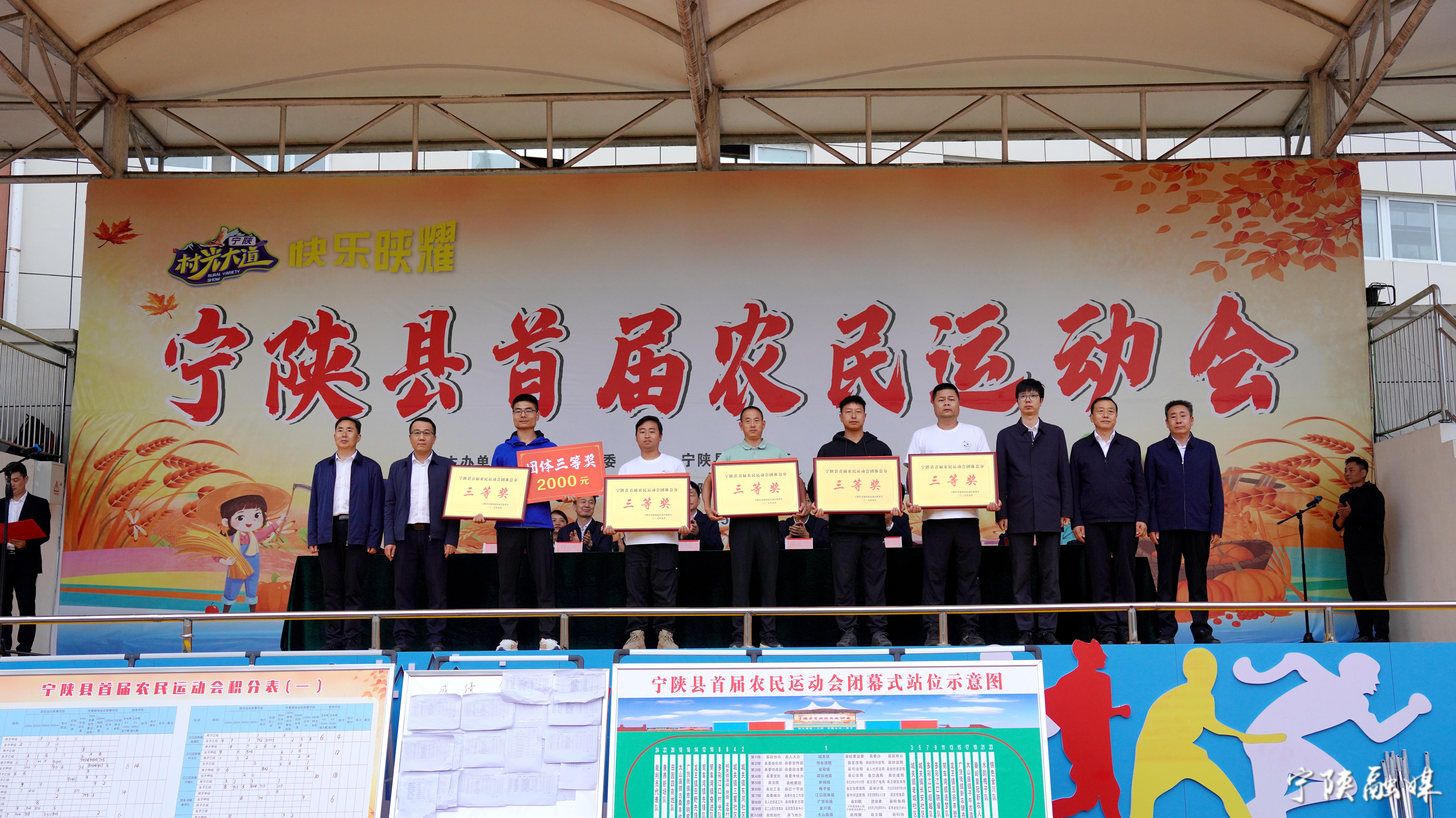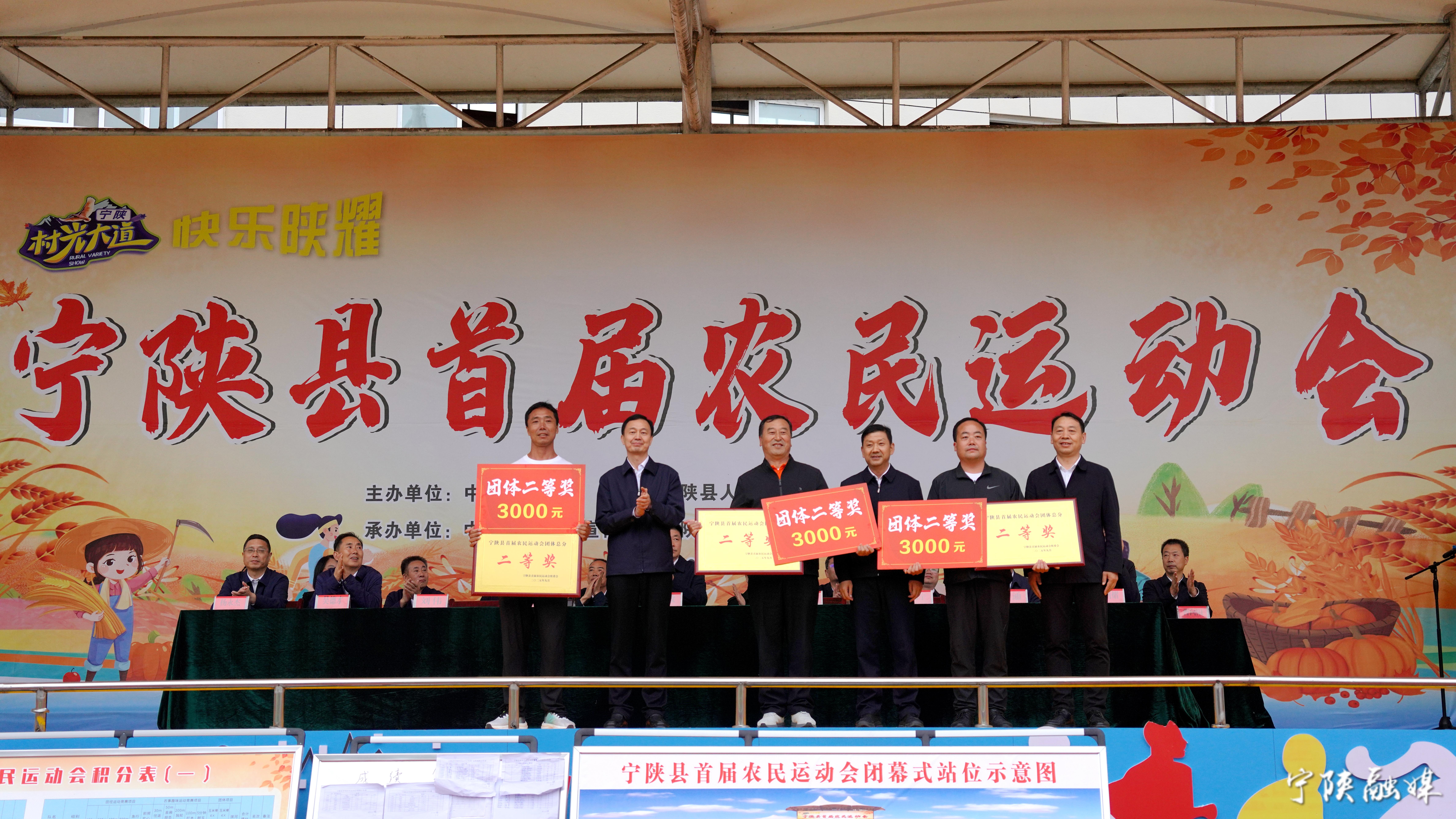 赛事结束后,随即进行颁奖仪式。裁判长首先宣读比赛成绩,副县长毛海霞宣布获奖单位名单,出席闭幕式的领导依次为获奖选手和团体颁发奖金、花环与荣誉证书。