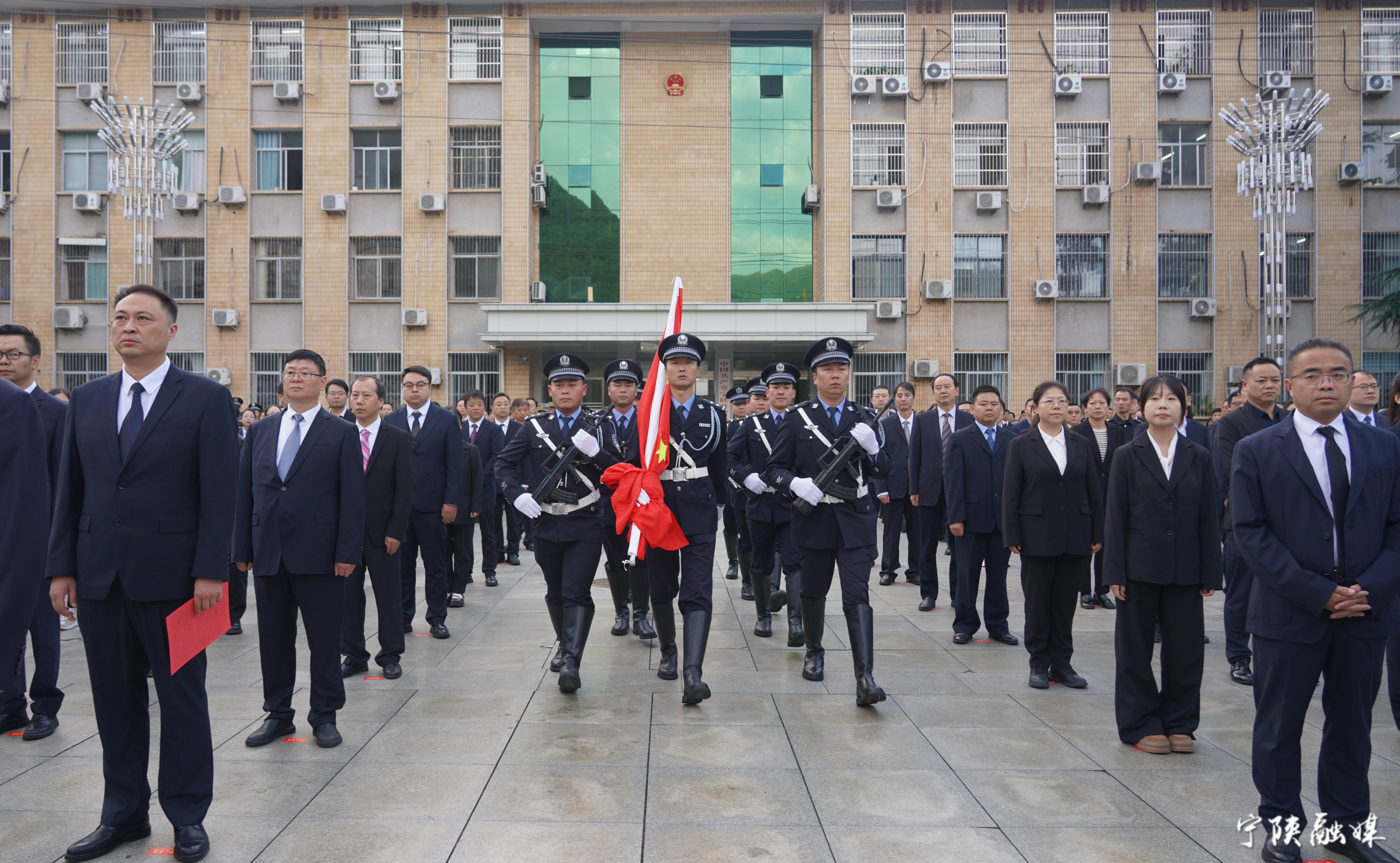 县委书记周锦政出席仪式并讲话。县长周富林主持仪式。县人大常委会主任陈述勇,县政协主席贺海宁等全体县级领导,县直各部门主要负责同志、机关干部代表,政法队伍代表、消防救援队员代表、医护代表,城关镇干部、群众代表、学生代表共600余人参加升国旗仪式。