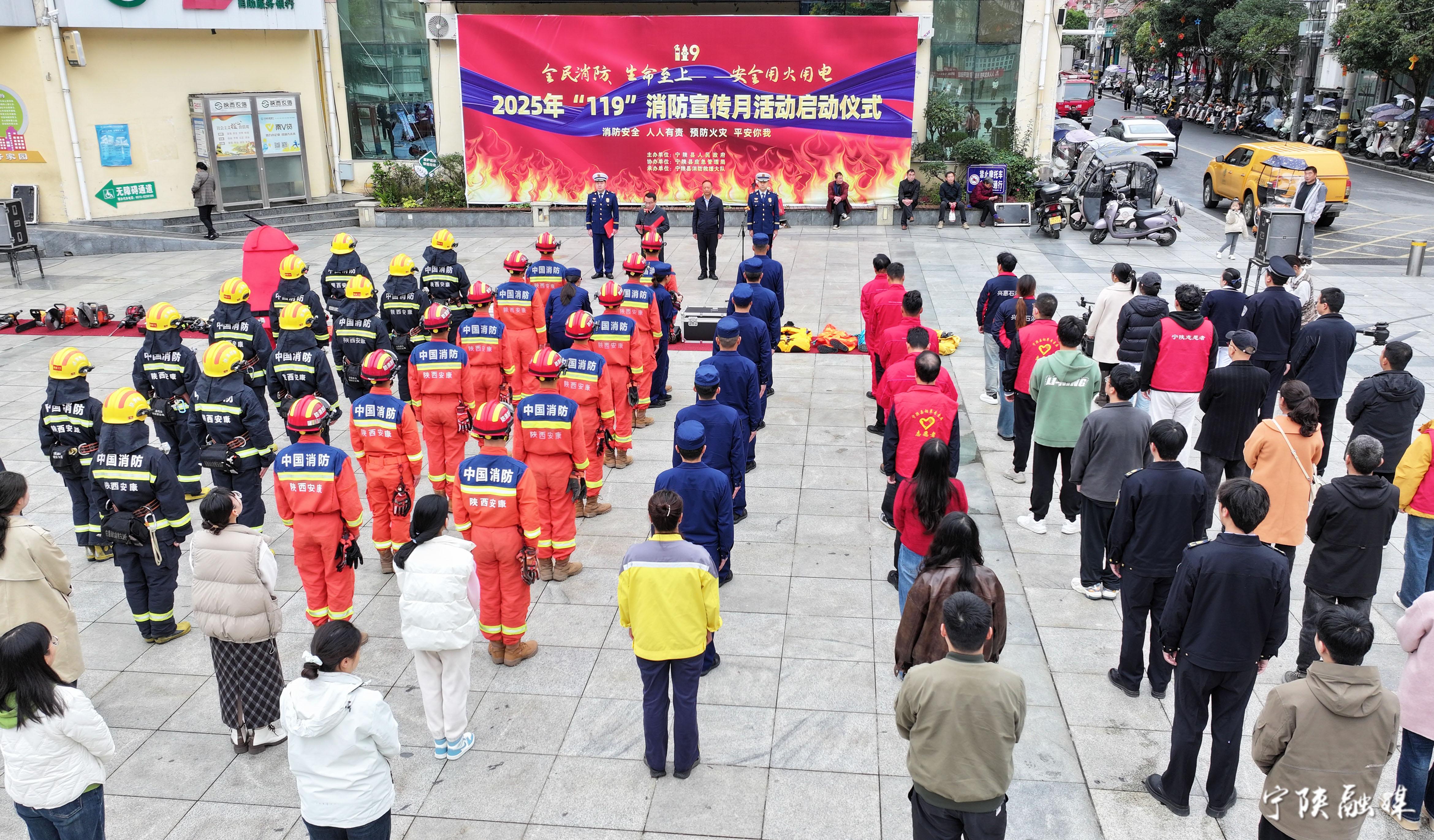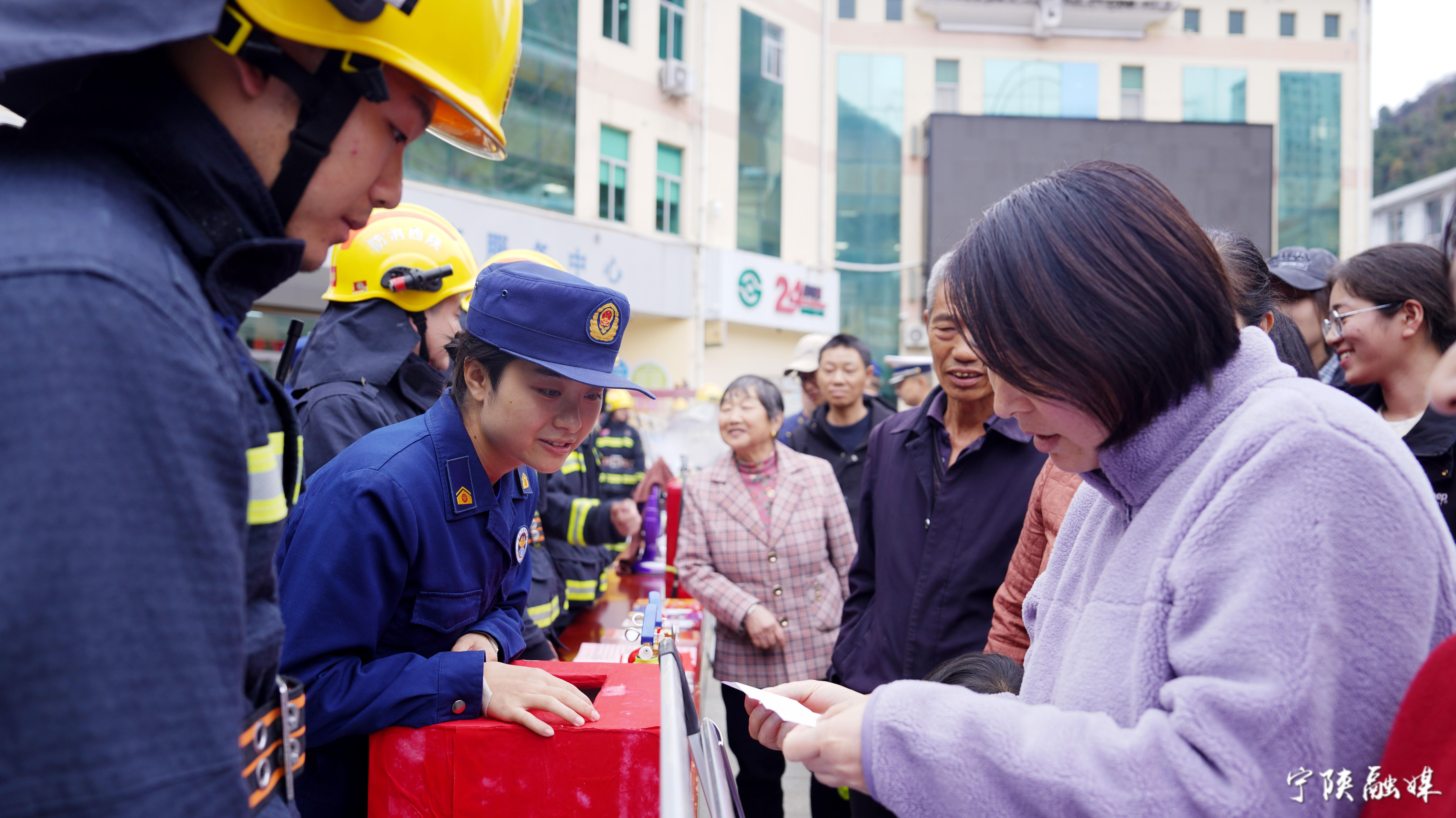 “2025年11月9日是第34个消防救援日,我们今天在这里举行消防宣传月启动仪式。在现场,我们准备了一些宣传彩页和一些常见的火灾隐患展示,比如说一些电气线路火灾、用火用电、动火作业等,借用这些现场的器材向群众展示一些常见的火灾风险隐患,以此加强消防宣传教育,提升全民消防安全素质。”宁陕县消防救援大队初级专业技术职务王宗坤表示,将以此次宣传月为契机,进一步凝聚全民消防的强大合力,让预防为主、生命至上的理念深植人心,推动消防安全治理从事后应对向事前预防转型。